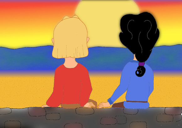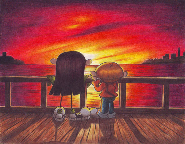 This was a request from ~Kuki and Wally are enjoying the sunset at the beach.
