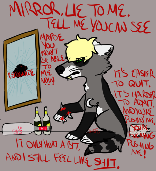 Dislikes: Homophobia/racism/transphobia/ableism/sexism/etc., (sudden) loud noises, fighting/yelling, people/crowds, aggressive music (mainly when it's loud), older men, mirrors, most social media, nightmares, seeing loved ones upset, kids, the ocean, heights, schools, hospitals