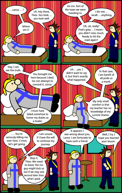 Hahaha. You'd surprised what I can do with JUST the eyes and the eyebrows--sadness, anger, surprise, annoyance, concentration. I haven't quite figured out what I'll do for happiness yet, though. Fortuantely the characters are hardly ever happy!
