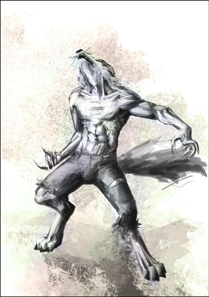 If your muscles were tearing and being replaced and your bones were rapidly shifting form, you'd be dramatic too. I'm an old film fan myself, the style of your art really appeals to me. I'm working on some werewolf lit, if you're ever interested in collaboration, let me know--my visual art skills (aside from photomanip) are squat, but I'm a fair writer.