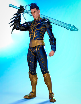 Azulos, with his serene blue hair tied into a neat ponytail, is the embodiment of calm determination. Like his brother Kyro, Azulos hails from the Dragon realm, which fell victim to the ruthless leader of Outfit. Empress Banette of Edenia took them in as infants and raised them as her own, nurturing their innate talents.As the other Dragon Guardian of Edenia, Azulos commands the elements of wind and storms. With a mere thought, he can summon powerful tempests and harness the forces of nature. His combat style is characterized by precise strikes and the ability to control the battlefield. Azulos's unwavering dedication to protecting Edenia, coupled with his unique powers, makes him a formidable warrior and a vital part of the battle against the looming threat of the Voidweaver.