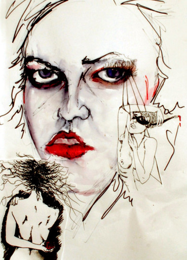 Collage of magazine images, tissue paper, washi paper, and painting and drawing on top.Approx. 30"x40" on foamcore board.