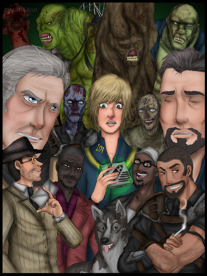 I do have one minor critique though, This works pretty well as a montage but the Vault Dweller seems oddly giant (mostly if you compare the head size between him and the others who are more or less equal) shrinking him down a touch or adjusting his placement in the image might even it out a bit, but it's just a quibble.