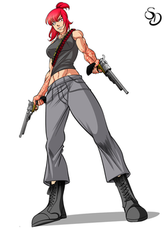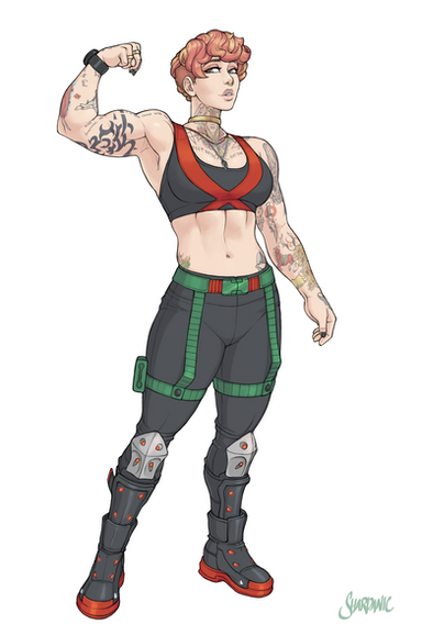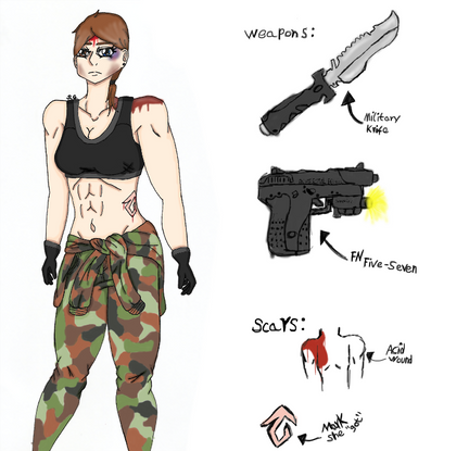 #abs #alternative #butcherknife #characterprofile #cutoffs #fitness #jeanshorts #knives #magnum #mercenary #mercs #midriff #military #mohawk #muscle #oc #originalcharacter #pistol #redhead #shotgun #tactical #throwingknives #weapons #loadout #combatknife #shardanic