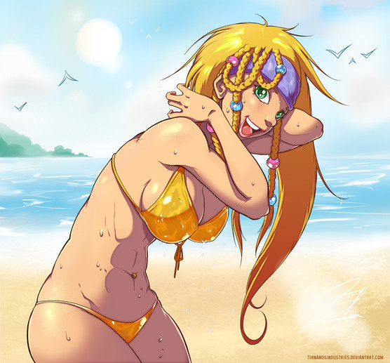 #abs #bikini #elf #fantasy #fitness #modern #oil #pinup #sunscreen