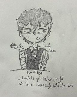 There's a spelling mistake I'm going to fix soon in this!!!! It's suppose to say; "Dazai woke him up a bit too early," but I forgot to add the "him." Sorry about that!I’m also still figuring out digital art, buuuuut, here’s some design attempts!