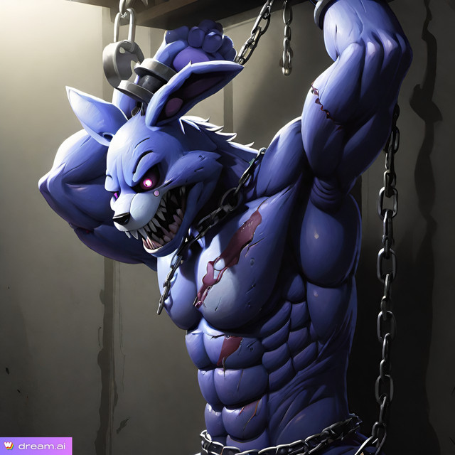 #anthro #bondage #buff #chained #chainedup #cuffed #furry #hare #muscle #muscles #muscular #nightmare #restrained #shackled #shackles #aiart #musclebondage #chained_up #aigenerated #aigeneratedart #wombodream #dreamdiffusion
