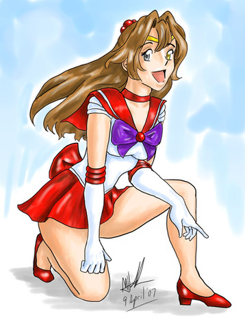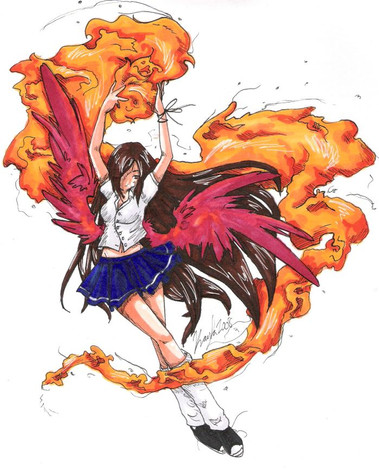 This is Eiko Hashimoto dancing around with light streams coming from her hands...This drawing is okay, but I think I overworked Eiko's hair with the markers. It's not suppose to look that streaky.