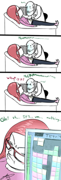 I was going to make an extra panel but i felt it hard to explain what would happen next(i imagine the simon would tell her that everything may change but he will try and find his way through the madness so he can live and be there for her upbringing)..And honestly this is kinda how i feel with a lot of the people i really like, as though they are slowly seeing things through a tented haze and there is no real getting through-__-'