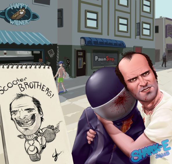 i was in the middle of working on the game last month when it hit me, i just looked at them and thought "that would make a great piece" so i started.. unfortunately i couldnt finish it until this week cause i had to crack down on work, when i jumped back into it i didnt think i could do it at first but of course all i had to do was put on some daft punk and it was on like donkey konghope yall like it^-^