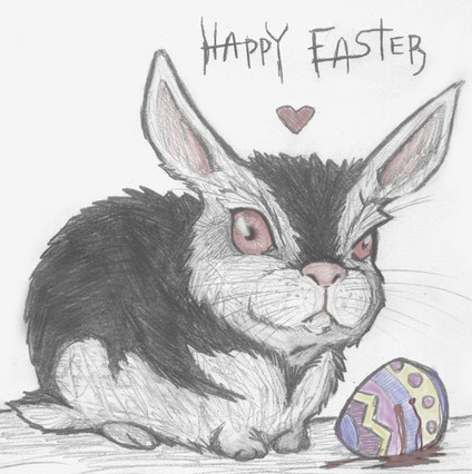 Reminds me a little bit of a character from a webcomic I read. Evil mini-lop through curious circumstances winds up as the Easter Bunny and possessed by the Ground Hog's shadow. : ) I think I like the look of your little white bunny here more!!!