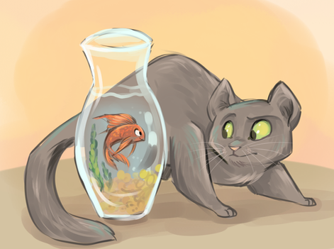 Lol Bunnicula is a mystery/horror/comedy book series for kids... it's about a vampire bunny that sucks the juices from unsuspecting fruits and vegetables! The family cat is out to get Bunnicula for good, and the dog just wants everyone to get along. This reminded me a little of that series; I read them all the time when I was little!