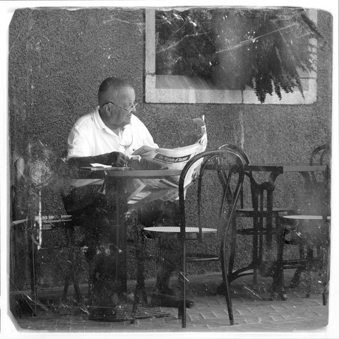 An old man, caught reading a novel.... under the rainFUJI 200 color negative film scan