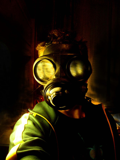 Photo of me, the gas-mask belongs to my brother-in-law, and modified by me.Then added some grunge, and scratches and stuff...