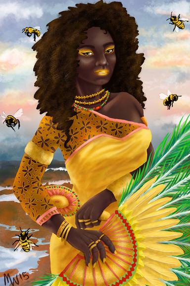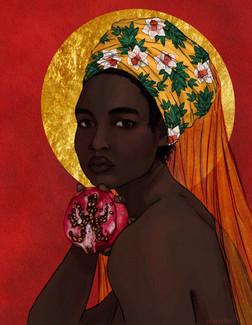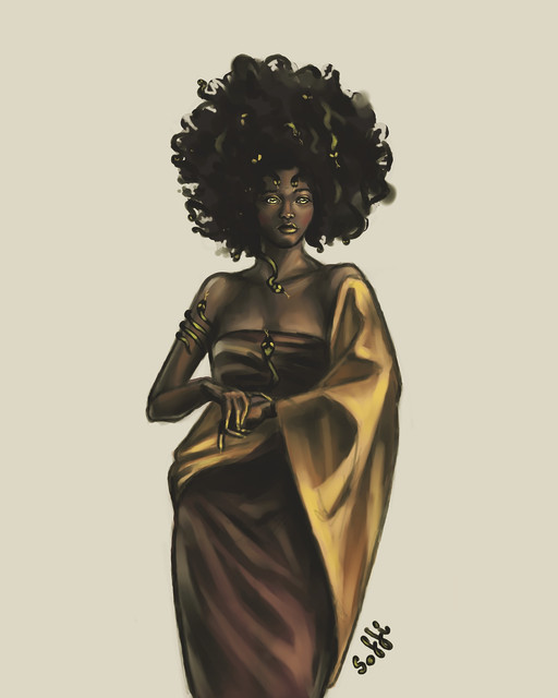 Gustav Klimt is a personal favorite and long-time inspiration… with a style really outside of my own. I did about 3 versions of this one before deciding to focus on his work in Roman and Greek Mythology (I love his Athena and Hygeia pieces), the use of gold leaf, the high contrast, and the detailed figures on a mostly flat surface.