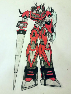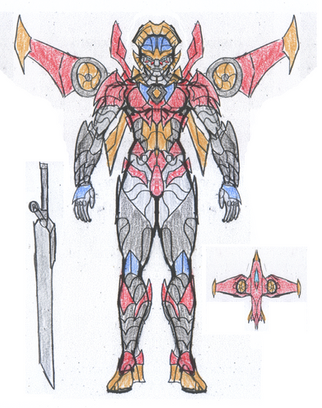 Weapons: AlphaOmega's saber is named the Alpha Sword, which has the word "Hope" engraved on it in cybertronian. The golden ring on his back is named the Omega Halo, which has the word "Glory" engraved on it in cybertronian.