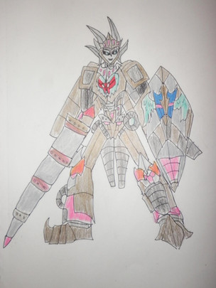 History: AlphaOmega is the firstborn Knight, the combined, and arguably the "true" form of the twins Nitro and Scar. They were originally born as one protoform, but for unknown reasons split into two during the birthing process. Which is why the twins seem to be complete opposites of each other, yet complete one another at the same time, balancing each other out in a Yin and Yang like bond.