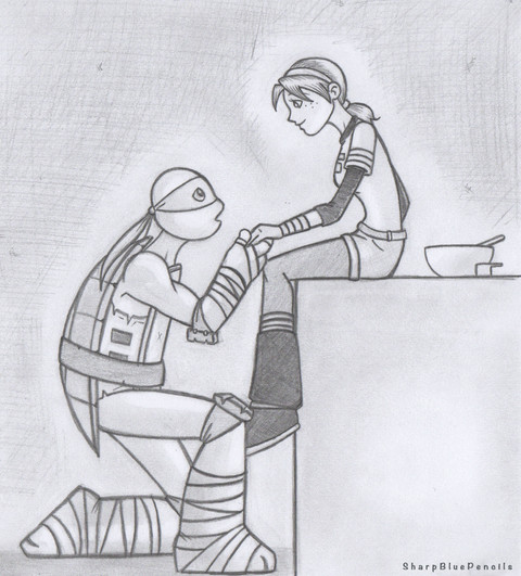 Irma Langinstein and Michelangelo from TMNT 2012.An art request made by a good friend of mine (in real life). She's not on DA, but you can find her on YouTube: www.youtube.com/user/Apriltellβ¦
