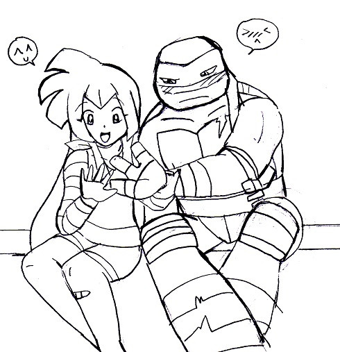 This drawing you've done of Irma and Mikey looks very nice and cute, and it probably won't be long until she meets the Ninja Turtles as well!