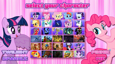 Created a crossover battle meme. Just made the character select, putting a select collage, red square on the left for P1, a blue square on the right for P2. Got all the characters I needed, six characters from Winx Club and Equestria Girls, five characters from Regal Academy, three characters from Lolirock, eight characters from Strawberry Shortcake: Berry Bitty Adventures and ten characters from Tekken.The characters that are playable: