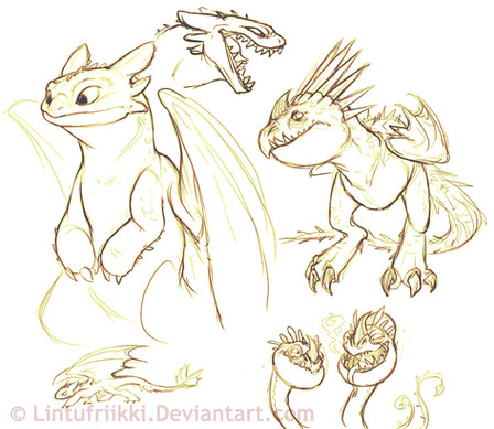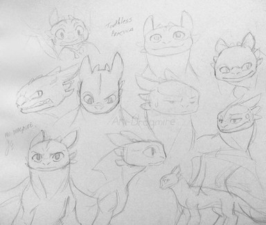 I thought I'd do some serious studies of one of my favorite dragons ever, Toothless.I'm actually gearing up to do a serious Dragons painting featuring Toothless, and I want to know that I'm getting him right. He is still one of the hardest characters I've ever drawn, his final design has such subtlety and flawless appeal.