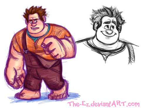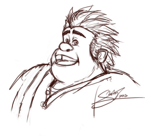 Some quick doodles of Wreck-It Ralph.This had to be one of Disney's tightest, most enjoyable films to ever come out. Such appealing, fun designs and characters. The story was brilliantly crafted, and hit hard with the emotional bits. It's always a plus when the lead character is super likable and sincere.