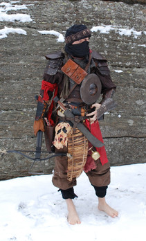 wow this is cool. i saw it and thought "wow this would be cool with a sheath on the back of the belt to hold a couple knives. criss-crossed over eachother. or wear the sheath under the cloak you have. that would look awesome.