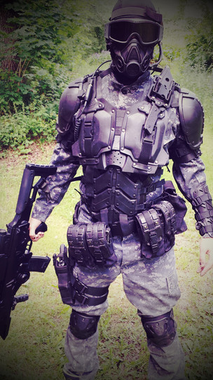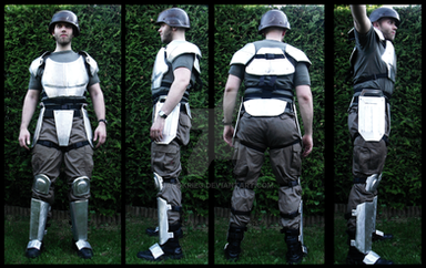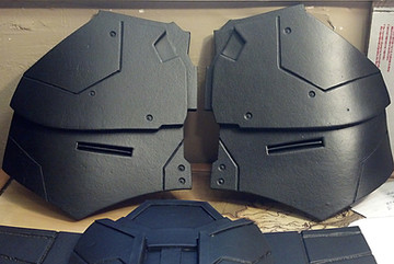 Shoulderpads to be used with the MK1 harness.Used the same base as with the AO1 (originally built for this) and added som stuff, as the ranksystem on the left one, the padding around the bicep and some protective rubberdetails on the lower plates.Made entirely by me in fibreglass, smoothcast plastic, rubber, latex, cordura and paint.