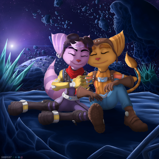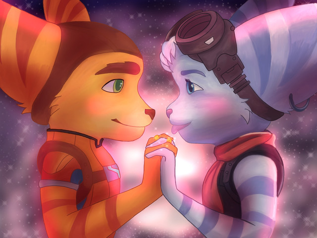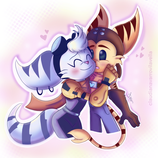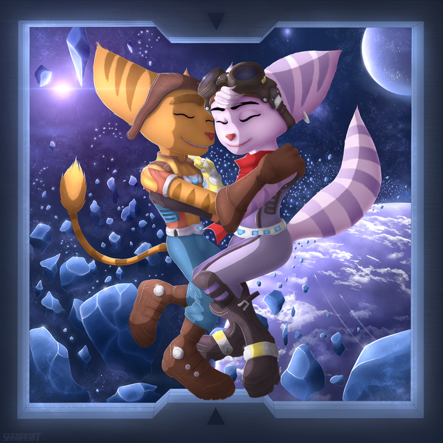#clothed #fanart #fur #furry #gloves #hug #lombax #love #orange #pink #ratchet #scarf #sfw #ship #tail #furryanthro #futuristic #greeneyes #insomniacgames #lineart #loveromance #ratchetandclank #rivet #artworkdigital #pink_fur #absurd_res #ratchetandclankriftapart #riftapart #riftapartlombax #rivetthelombax