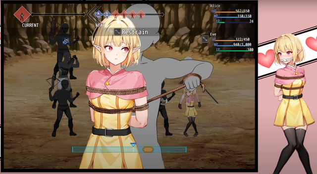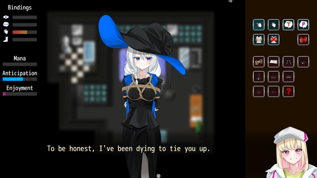 But the problem with this kind of mechanic is that your eyes will be focused on the interface, not the girl (if there is an animation of her being tied up).