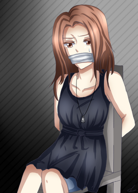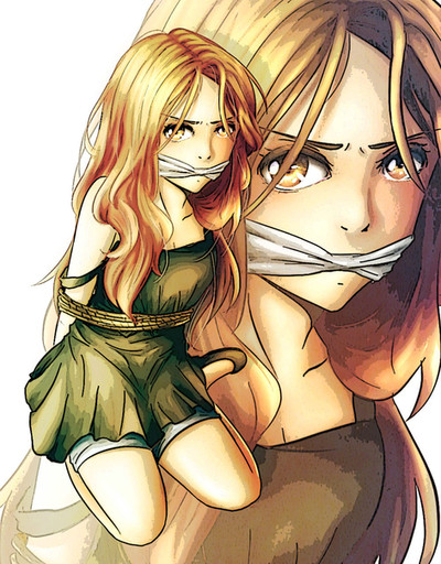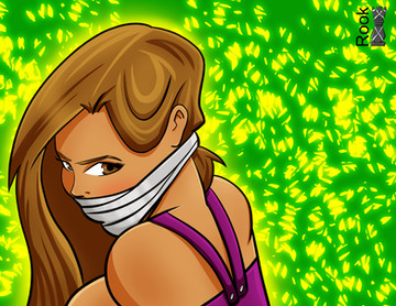 That's an intense drawing ; nice angle and fiesty expression. It's like she's prone to jump on... the one who put her in this situation. It's always nice to see the details that empower a lady like that without showing "tooo" much (mainly, her shoulders that clearly indicate that her arms are tied behind her without actually really showing it).