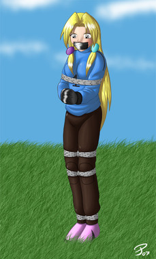 oh man this pic is so good~~ the restraints seem so snug and I love the way the gag and her lips are drawn~~
