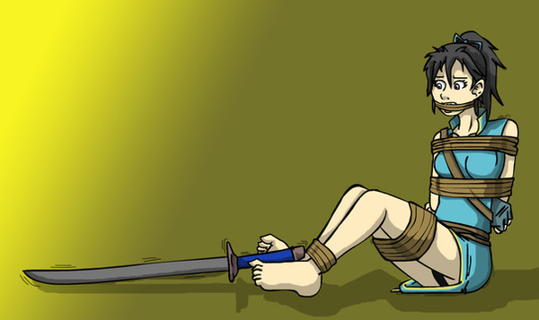 I like how you tied her ankles to her own sword.