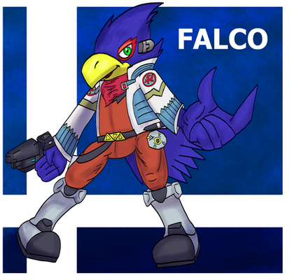 made for a good IRL friend of mine who also competitively Smashes. he jokingly asked me to draw Falco, his Melee main, and I agreed.here's that, then.