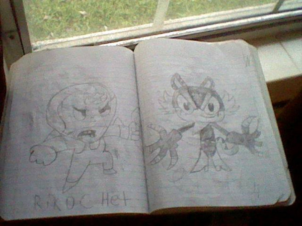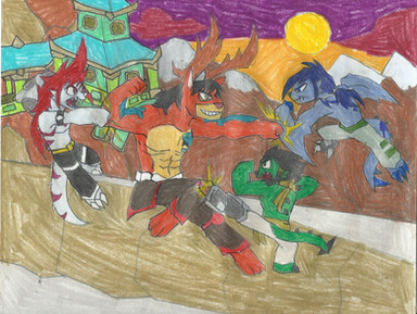 Yeah. Ok more of Demonio Tigre. DAMN. You guys are probably like "OK no more of this! We wanna see some regular old El Tigre fan arts." -o-; I don't even know. I kinda just thought up of evil Frida's name out of nowhere. IDK. I'm tired. I thought this turned out pretty good though. I can't scan it cause its too big(its a poster) so I just took a picture of it on my wall. Can anyone guess what the bottom pic is?