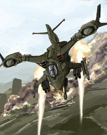I really like the design and function. How you included a camera to scan the landscape so the legs would fixate into a position, rather than letting it be loose and land felt very realistic. Keeping it a gunship with extra landing capability, rather than a "winged walker" keeps it function-based, while not getting overly ... out of hand? I'm at a loss of words today.