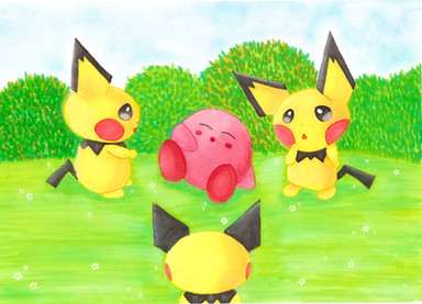 XD Thta's cute!^^ Nice coloring, great blending and smoothness to it, and the GRASS!!! *__* very nice XD Pika and Pi are so cuddly Nice work^__~