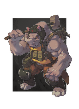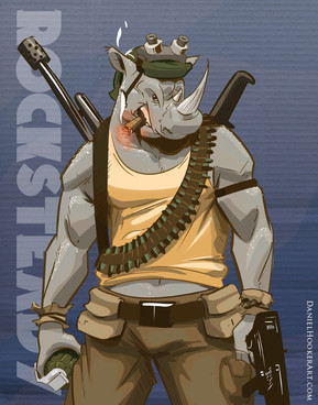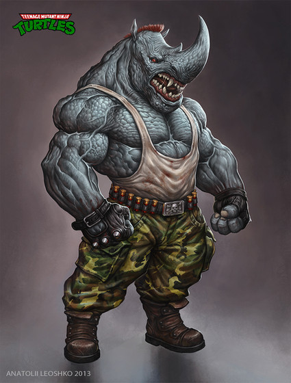 This piece is very special to me, since I was able to hold a pencil I've been drawing Ninja Turtle stuff. I can guarantee I wouldn't be the artist I am today if the TMNT, and my Mom (She's the one who got me the comics) had been around.Since I'm going to the GDC, I want my portfolio to blow these developers away so I can get a job finally. I hope this and some other re-designs will do it. This is my take on Rocksteady, if you don't know who Rocksteady is I suggest you stop looking and this and read some TMNT lore.