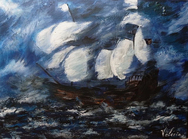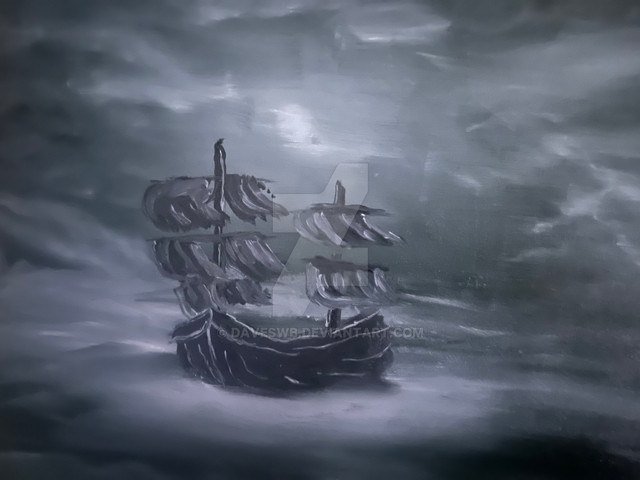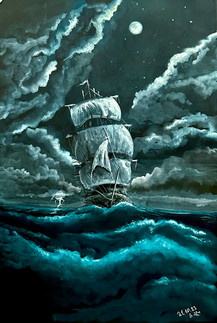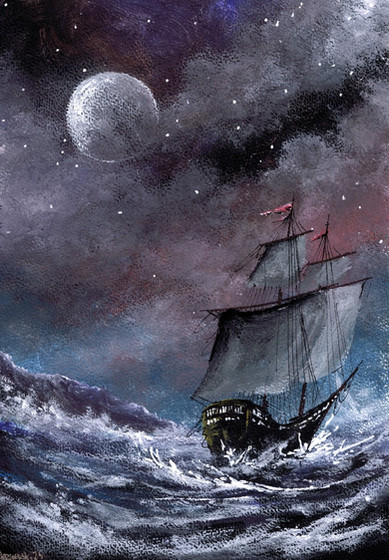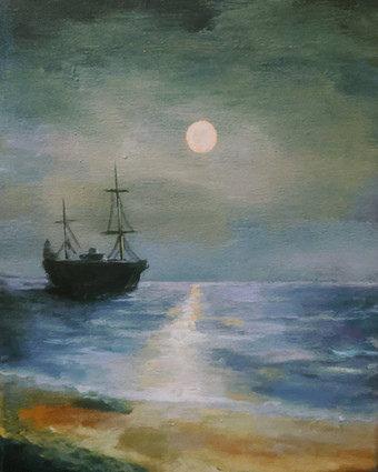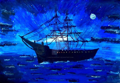 #blue #nightview #painting #sailing #ship #moonlight