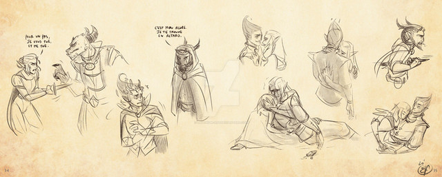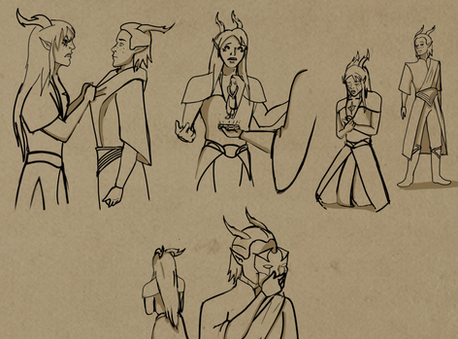 With her steady flow of soft smiles and encouraging advice, Shiratelle Starshine was quickly nicknamed "Group Mom" in the Guardian Hall. She spent much of her time checking up on the other wielders, offering support through the form of tea, blankets and gentle teasing. She often toed the line between being the moral support and the moral compass of the soldiers she was living with, her inclinations towards forgiveness and mercy resolving numerous conflicts without bloodshed. However, like any good mom, as soon as the blood of her children was threatened, the gentleness disappeared.Just a sketchdump from my morning class. I don't know how other people engage with online class without keeping their hands busy. Just sitting and staring at the screen would kill me.