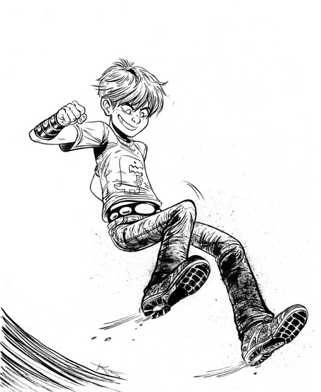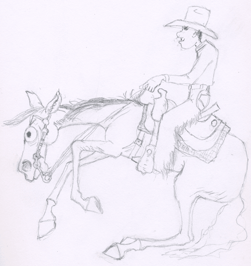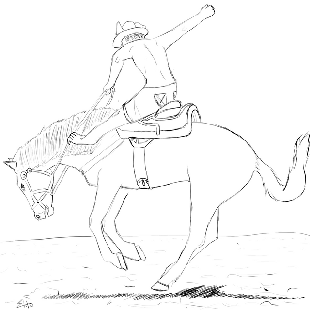 Inked over five days... colored version to come over the easter weekend.. Kial (in human form) riding a mechanical bull. originally drawn out in between customers at my old job... muaha i draw instead of doing my job.Ride it good