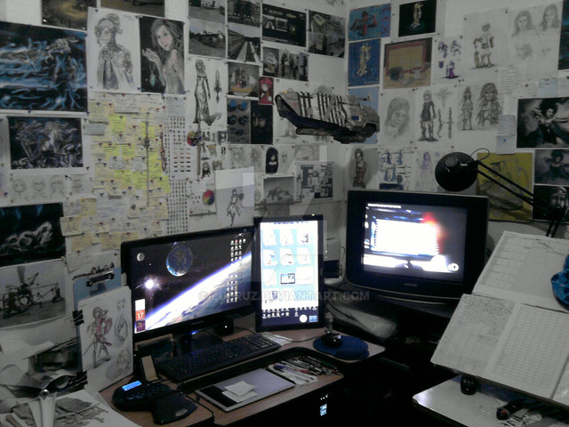 that looks just so awesome... it feels o personal because of the drawings and artistic... brushes but also computers and tablet... XD awesome...