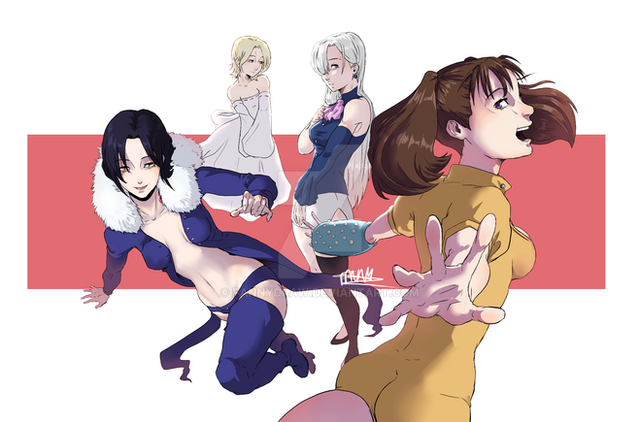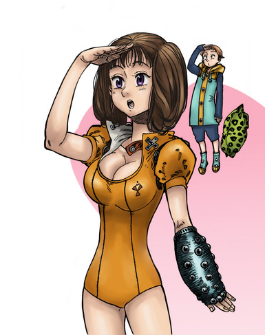 lo-res image of merlin of seven deadly sins with diane the serpent and meliodas, you can get the hi res image , only be my patron www.patreon.com/miyokoRelated content