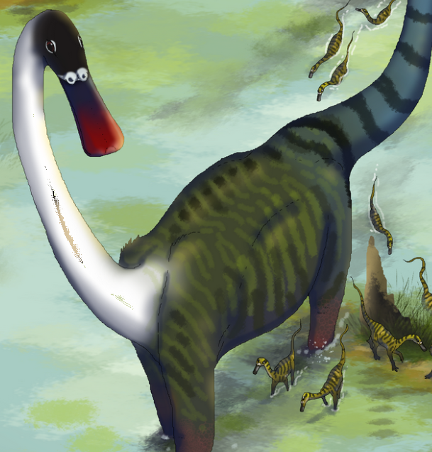 I really want to see the distant future evolutions of these. I see them evolving into elephantine bipedal browsers using their tongue like and elephant uses it's trunk. OR. Depending on how smart the are they could use their tongues as hands.