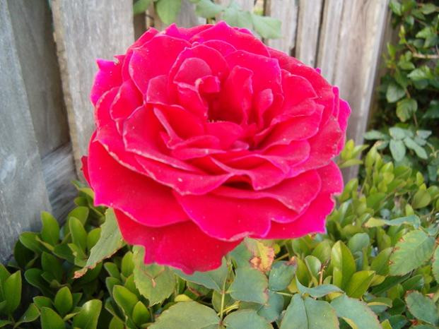nothing to complain about - even you had place the rose in the middel of the pic. Now there is a bit too much wood in the pic, but the contrast between the bloom and the wood is very impressing - such a strong red