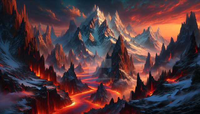 #digitalpainting #epicfantasy #fantasyart #fantasylandscape #fantasyscenery #fantasyworld #fierysky #landscape #mountainpeak #orangesky #scenicvista #sunsetglow #vibrantcolors #enchantedvalley #magicalrealm #dramaticscene #fantasy_world #floating_island #volcanicmountain #aiart #fantasy_art #fantasymountain #mysticalvalley #epiclandscape #4kart #sky_palace #magical_landscape #epic_landscape #mystical_architecture