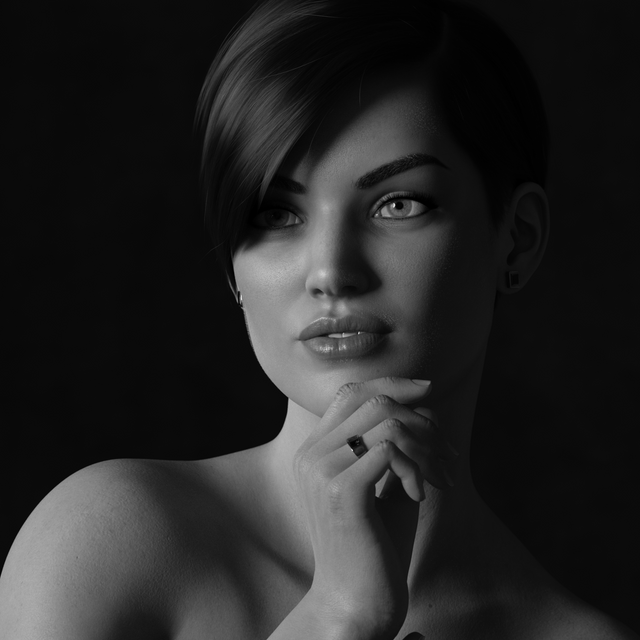 #portrait #digitalart #blackandwhite #daz3d #dazstudio #female #light #render #shadow #woman #dazstudioiray