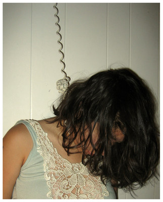 I did a series of myself dress like this for the final project... which plays off the vixen-statement scrap. The whole idea of a photograph of you is not really who you are. Unfortunatly the series was taken under tungsten light with daylight film. They came out really yellow. I tried to balance them as best as I could in the darkroom, but it came to a point where there was a greying/color shift in the negs... This is fixed up a bit in photoshop but you can still see in the bottom corners what I'm talking about.