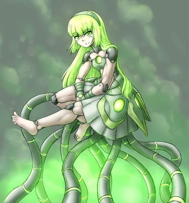 #cape #green #machine #mise #oc #robot #greenhair #monstergirl #robotgirl #scylla #tentacles