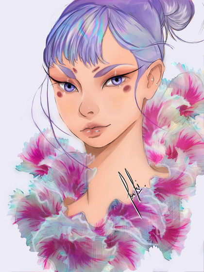 Great job on the drawing, I really like how you did teh hair, andthe color of her skin almost seems to make her glow.